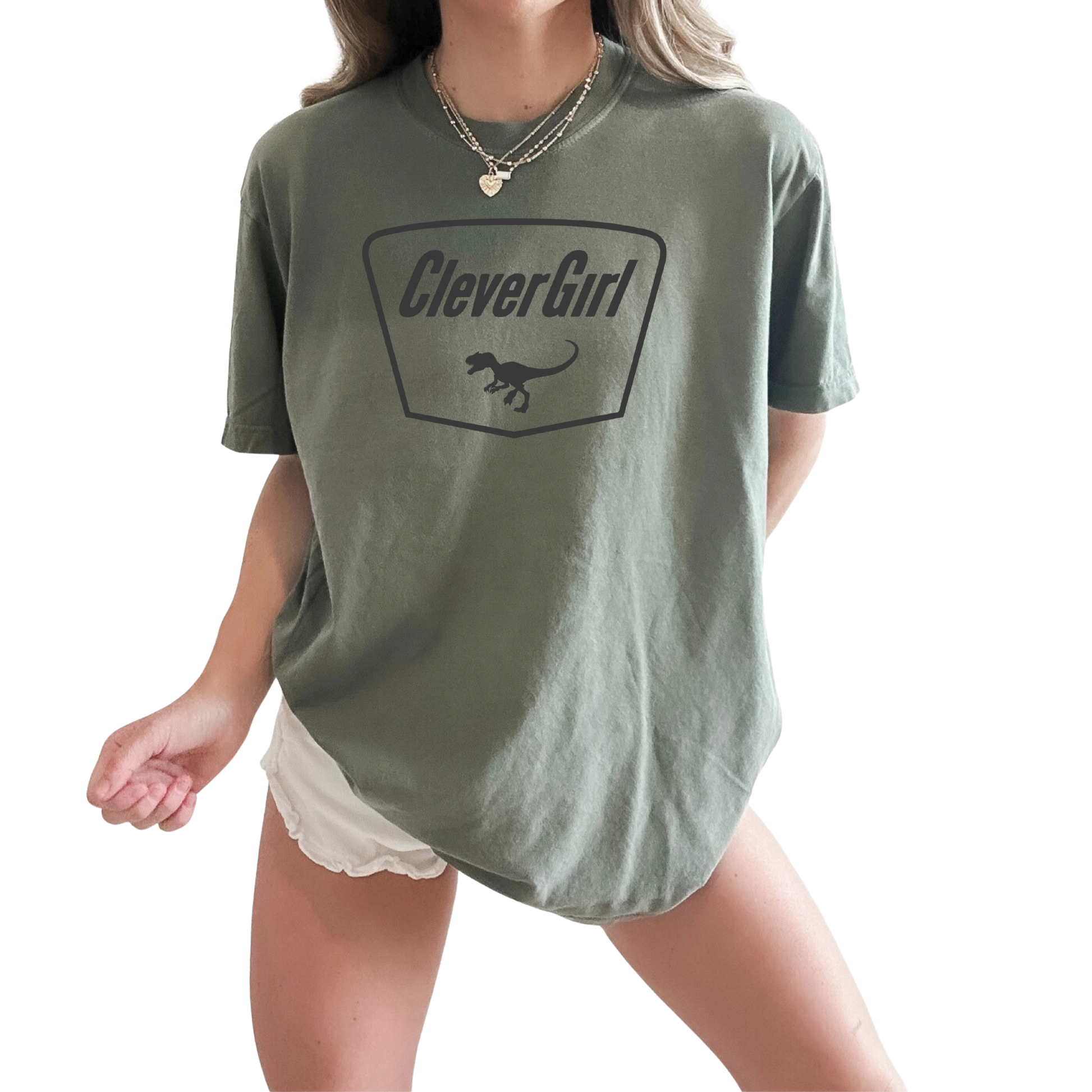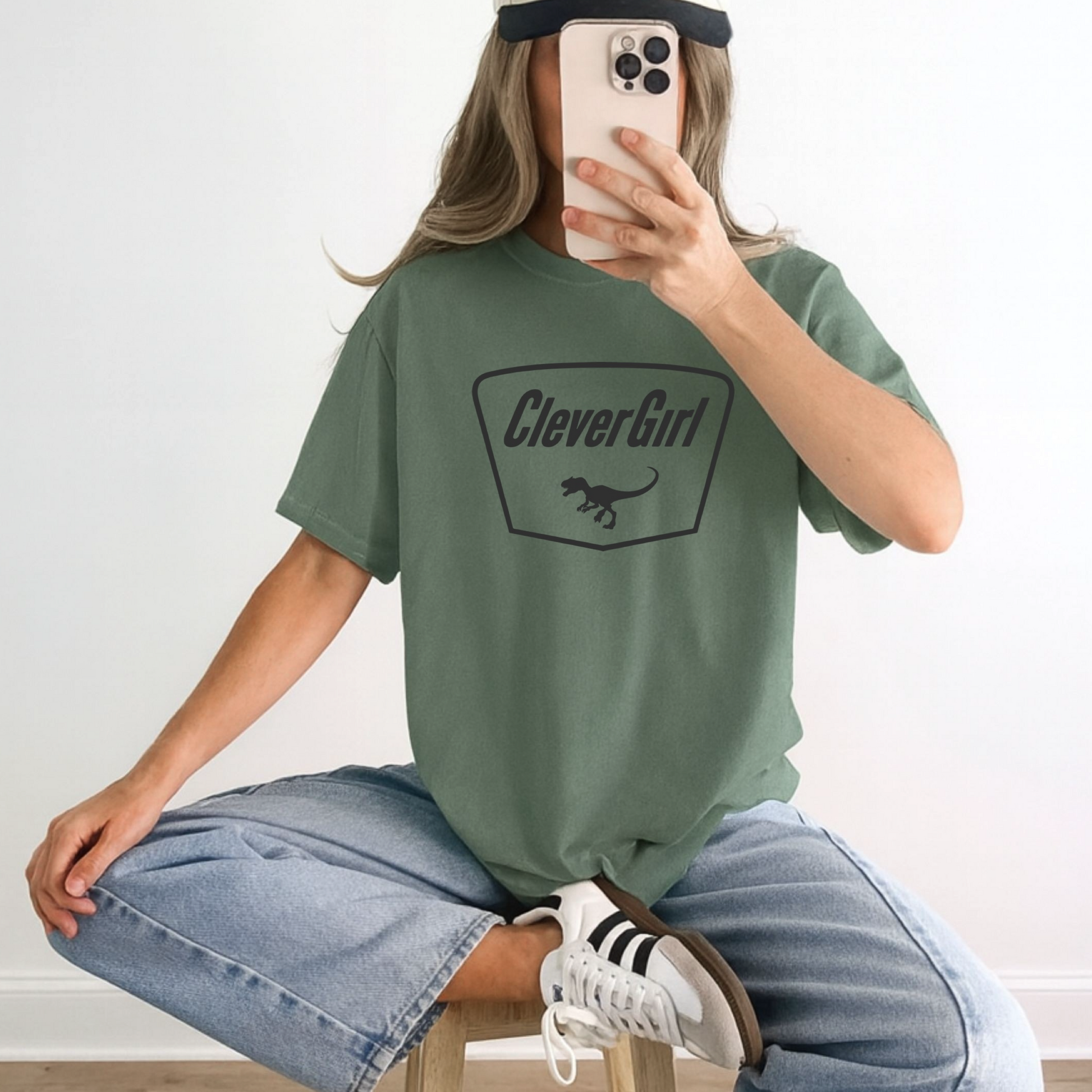 Show off your wit and wild side with our Clever Girl t-shirt — inspired by jurassic park, dinosaur design for smart, fearless women. Soft, comfy, and perfect for everyday adventures.