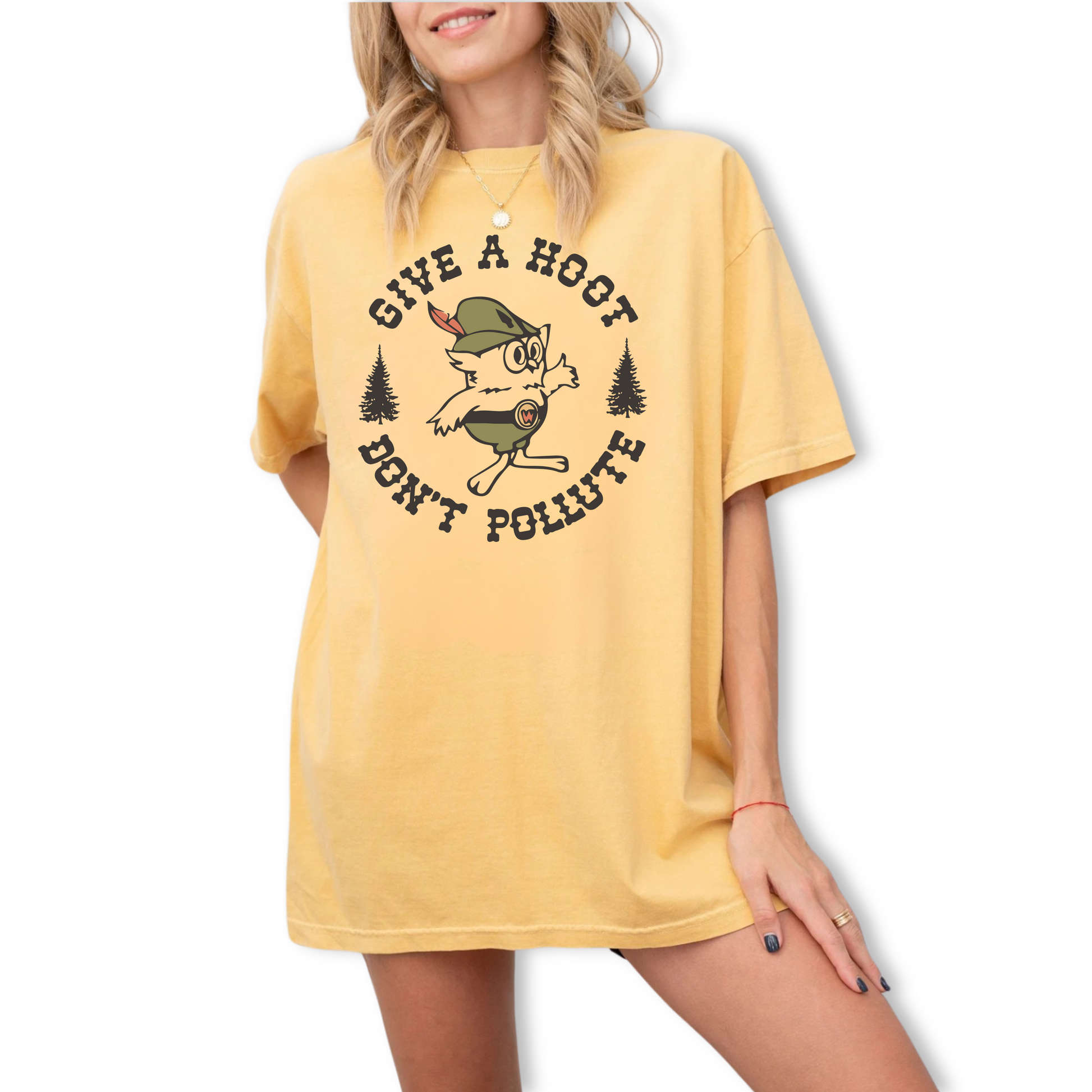 Stay wild, stay kind. Our Vintage Sytle Give a hoot don't pollute Owl Tee features give an earthy vibes—perfect for nature lovers. Made from soft fabric, it’s comfy, conscious, and built for everyday adventures.