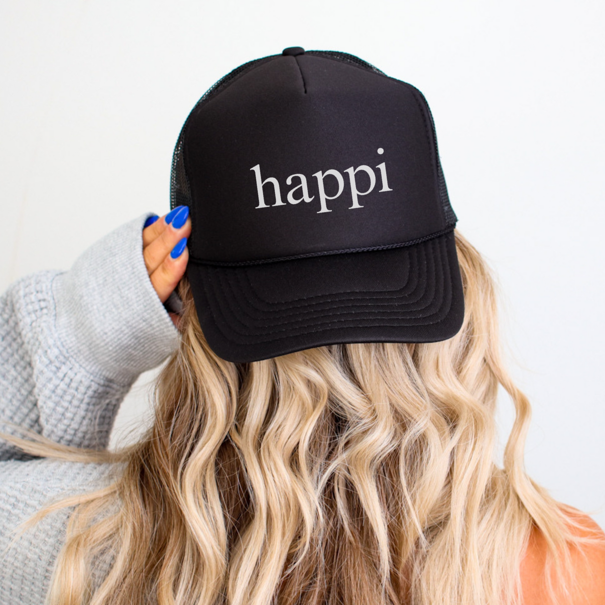 Rock your Happi attitude! Elevate your fashion with our throwback trucker hat. This hat is great for daily wear, hitting the gym, or flaunting your happi vibes. Super fly and effortlessly chill!