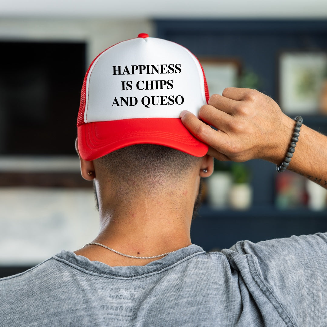 Add some flavor to your look with our Happiness Is Chips and Queso retro trucker hat, the perfect blend of humor, comfort, and vintage style. Ideal for taco nights, road trips, or just living your best snack life.