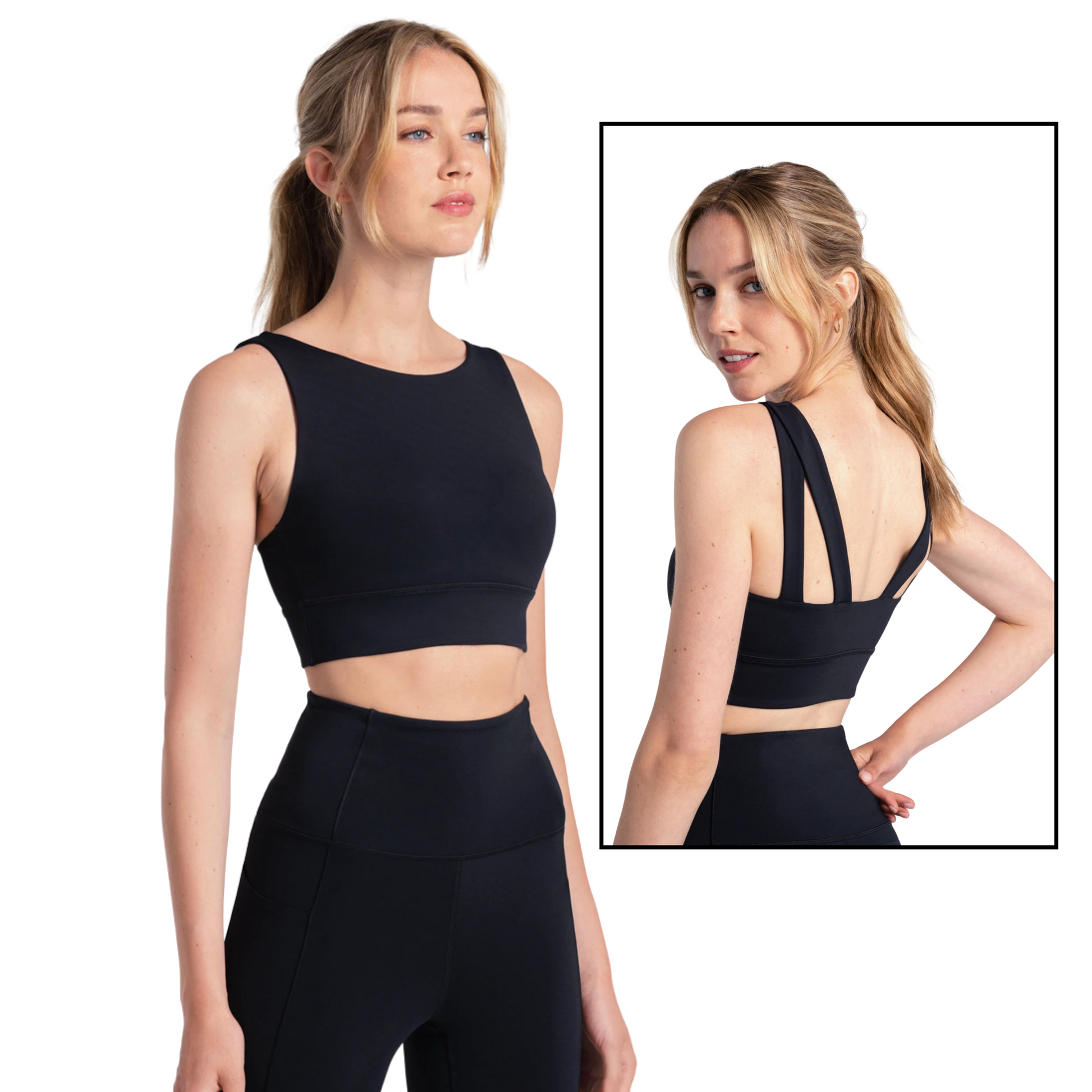 Say hello to your new workout wingwoman. This buttery-soft, racerback longline sports bra hugs you in all the right places with wide straps and a secure under-bust band—so you can slay sprints, squats, or Sunday errands without a jiggle in sight. Go on, get sweaty. She's got you.