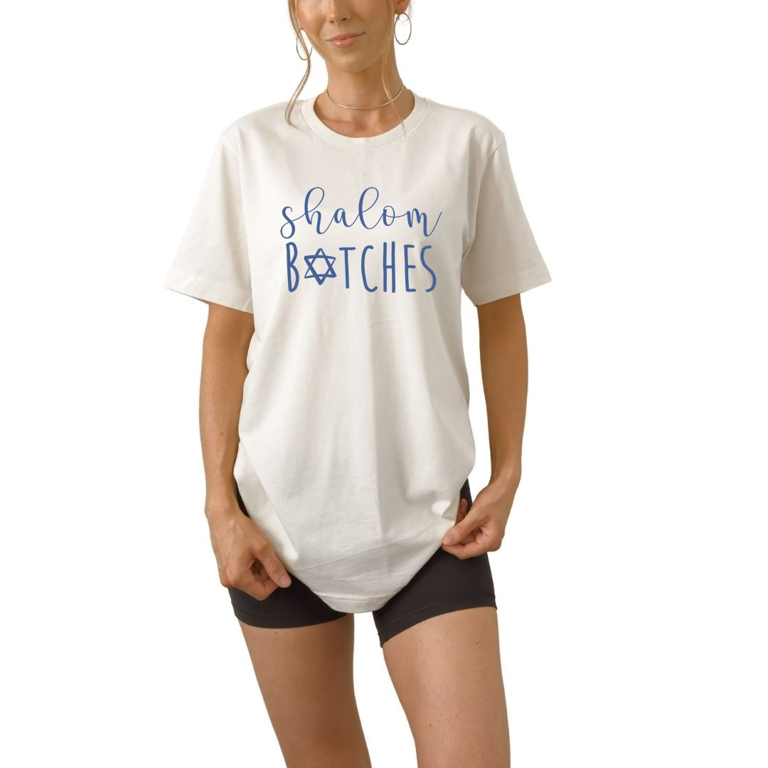 Say it with style and a smile — our Shalom B*tches shirt brings bold energy to your Hanukkah celebrations. Soft, cozy, and perfect for parties, gifting, or just spreading a little sass and shalom.