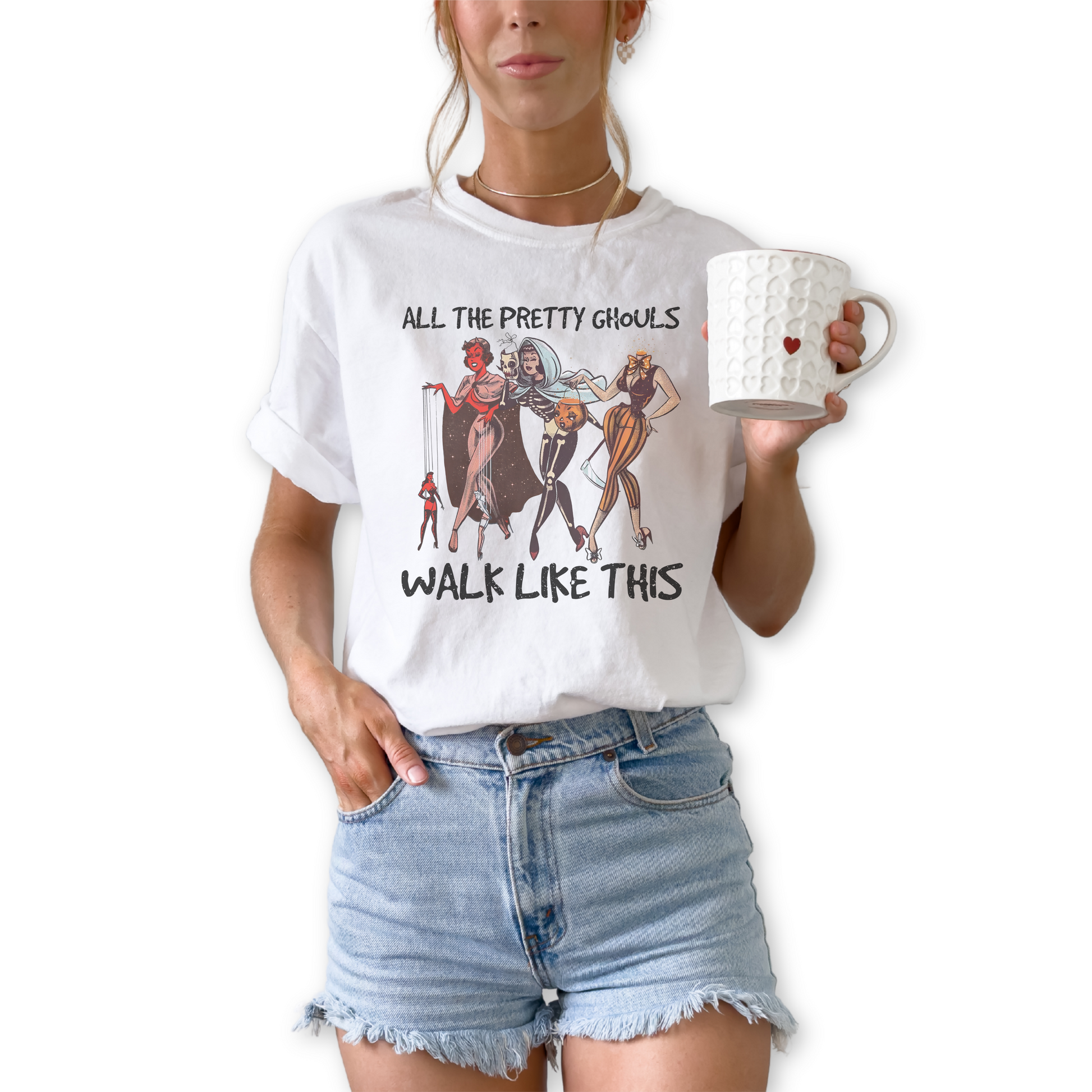 Turn heads this Halloween with our unisex garment-dyed t-shirt, featuring a bold retro design that reads “All the Pretty Girls Walk Like This”, this shirt blends spooky vibes with timeless style. Whether you're attending a Halloween party, handing out candy, or just love retro-inspired fashion, this shirt is a must-have.