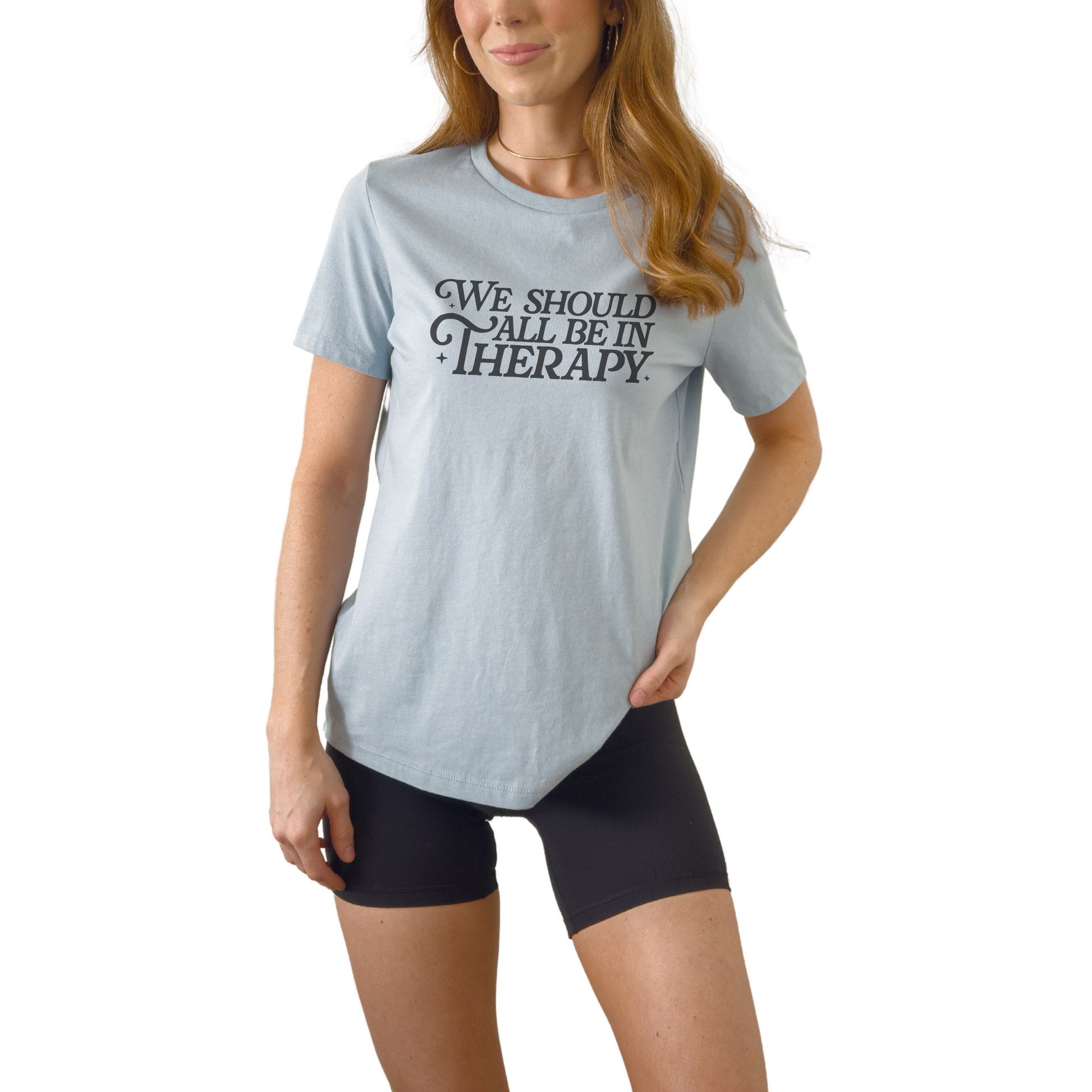 Empower conversations about mental health with our “We Should All Be in Therapy” women’s t-shirt. Made for comfort and everyday wear, this tee pairs effortlessly with jeans, leggings, or loungewear while spreading an important message.